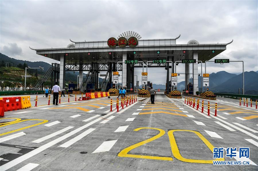 这是10月1日拍摄的贵州剑榕高速榕江北收费站。 10月1日,由中交一公局集团有限公司承建的贵州剑(河)榕(江)高速公路开通试运营,实现全线通车。剑榕高速公路跨越三穗、剑河、榕江三个县,全长约118公里。 新华社记者 杨文斌 摄