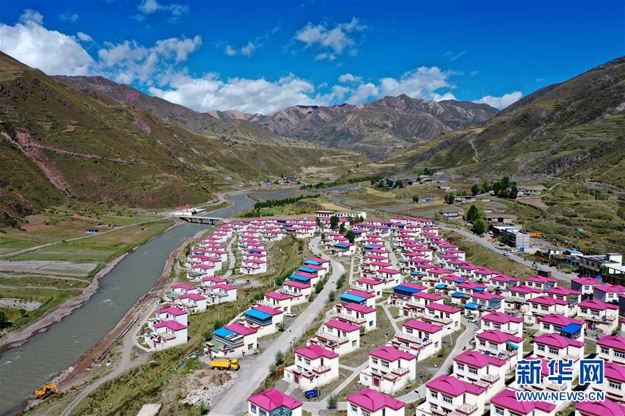 西藏昌都市丁青县尺牍镇易地扶贫搬迁安置点一角(9月18日摄,无人机照片)。新华社记者 詹彦 摄