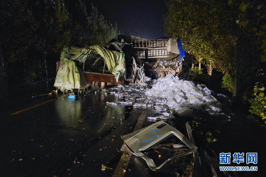 这是10月4日拍摄的事故现场。 据吉林省扶余市公安局4日15时提供的最新数据,当日5时40分许,吉林省扶余市(隶属于松原市,县级)514省道39公里处发生一起重大道路交通事故。此次事故已造成18人死亡、1人受伤。 新华社记者 许畅 摄