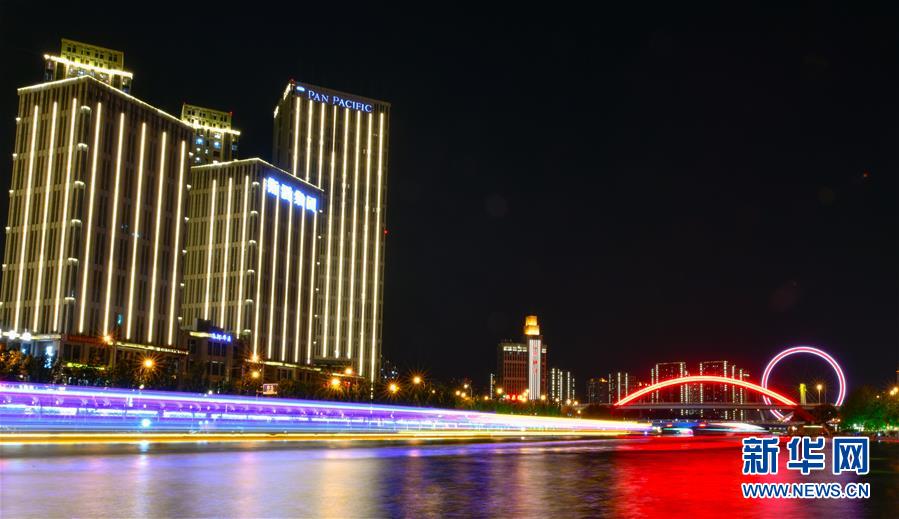 10月2日拍摄的天津海河夜景。 国庆、中秋“双节”期间,天津海河夜景灯光璀璨。 新华社发 (孙凡越 摄)