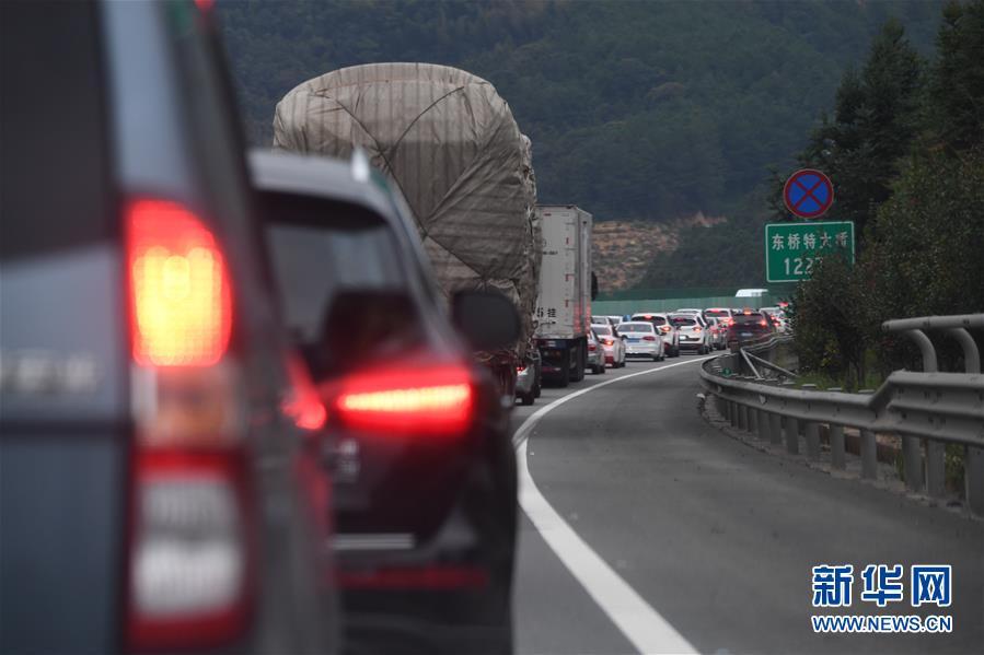10月6日,G3京台高速福建省福州市闽清县附近出现拥堵。 随着长假进入尾声,福建多地出现返程高峰,高速道路车流量增大,部分路段出现拥堵现象。 新华社记者 宋为伟 摄