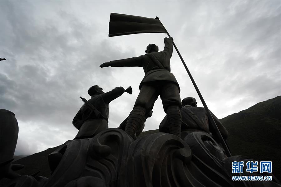 西藏昌都市江达县岗托村十八军行军雕像(9月24日摄)。新华社记者 詹彦 摄