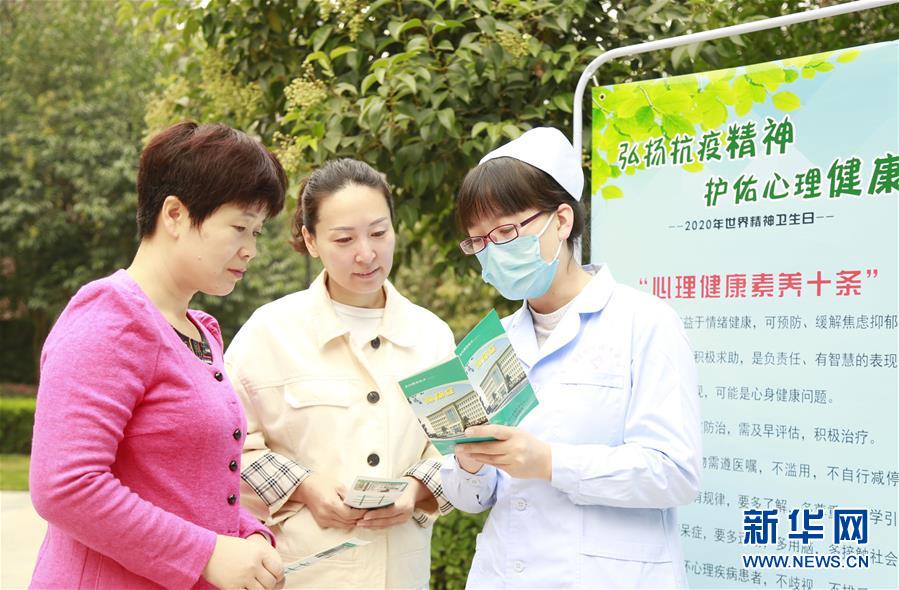 10月10日,邢台市精神卫生中心医护人员为西门里街道学府社区居民讲解精神卫生知识。 当日是世界精神卫生日,河北省邢台市精神卫生中心医护人员走进社区,开展“世界精神卫生日护佑心理健康义诊活动”,解答居民关于精神健康方面的问题,向居民普及精神卫生知识。 新华社发(张驰 摄)