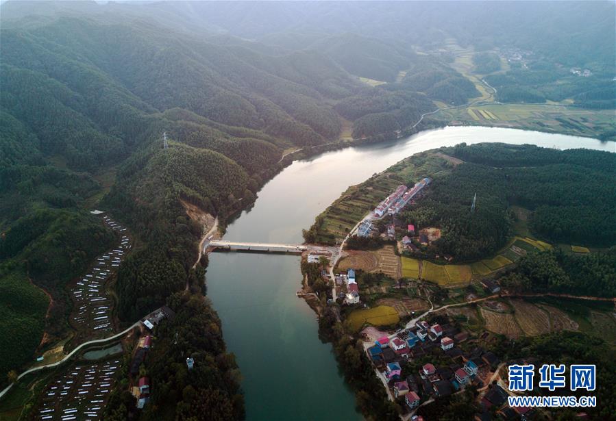 这是福建省南平市浦城县水北街镇茅洲渡口及周边地貌(10月9日摄,无人机照片)。新华社记者 宋为伟 摄