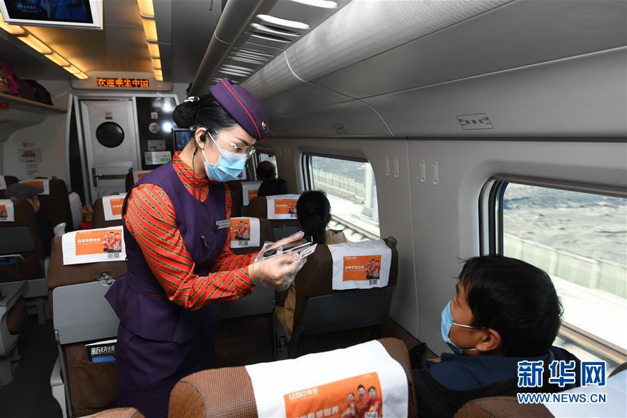 10月11日,列车员在乌鲁木齐至西安北D2708次动车组列车上进行安全检查和信息核对。 当日,新疆乌鲁木齐至陕西西安方向首趟直达动车开行,全程2354公里,运行时间13小时22分。据介绍,这是兰新高铁运营6年来开行的第二趟出疆方向动车组列车,乌鲁木齐至西安实现了朝发夕至。 新华社记者 沙达提 摄