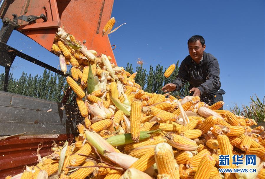 10月13日,河北省河间市景和镇丰尔庄村农民在收获玉米。 金秋时节,河北各地秋粮进入大面积收获期,农民忙着收获、晾晒农作物,田间地头一派繁忙景象。 新华社记者 朱旭东 摄