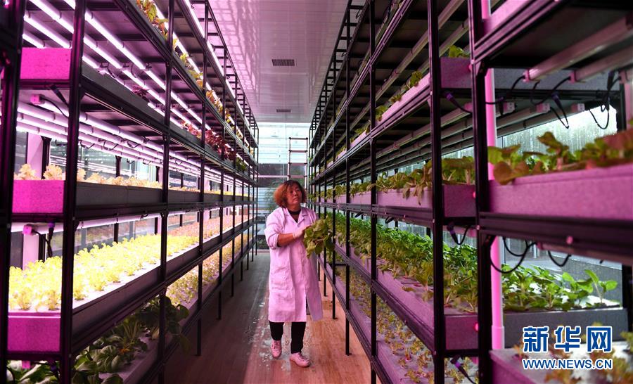 10月13日,工人在河北省石家庄市正定县塔元庄村“智慧农场”温室内管护蔬菜。新华社发(许建园 摄)