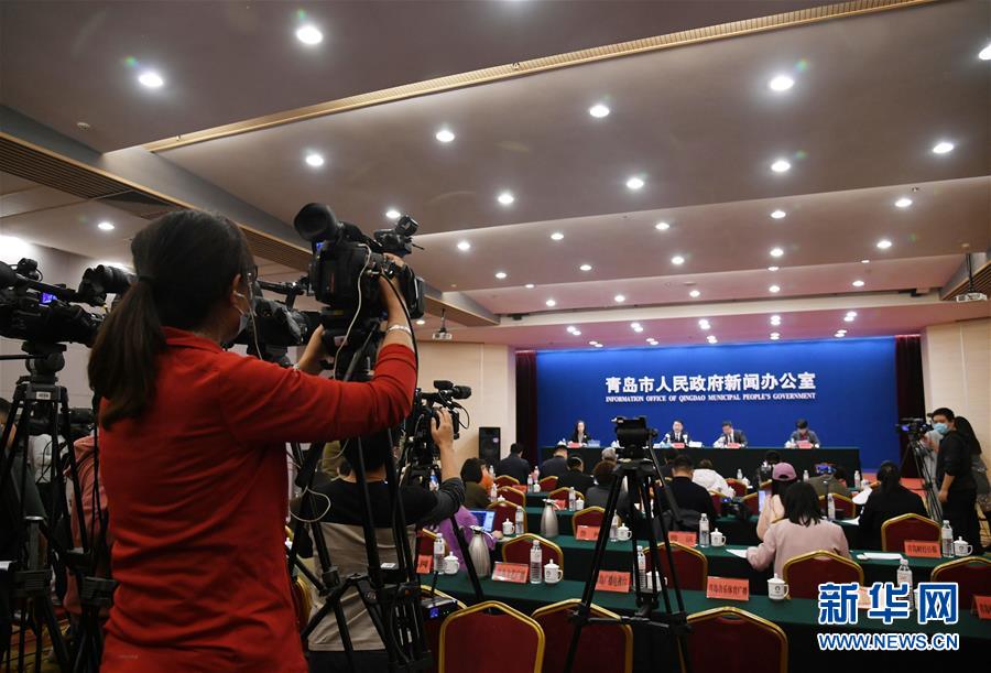 10月17日,记者在青岛市政府新闻办召开的新闻发布会上采访。新华社记者 李紫恒 摄