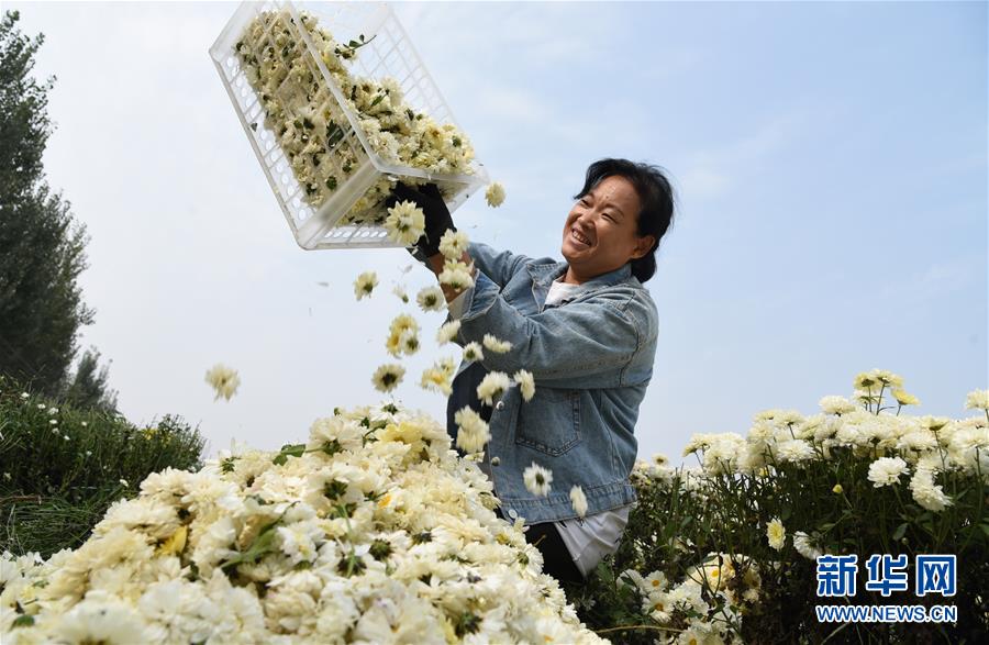 10月18日,河北省河间市米各庄镇马村农民在菊花种植基地分拣采收的菊花。 近年来,河北省河间市米各庄镇在推进产业富民过程中,积极优化农业产业结构,结合市场需求,采取“企业+专业合作社+农户”订单种植模式,引导农民发展特色菊花种植,有效带动农业增效、农民增收。 新华社记者 朱旭东 摄