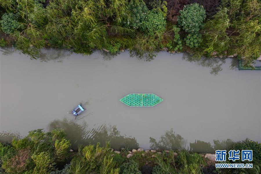 10月21日,无人巡检及垃圾收集船在杭州市下城区东新街道横河港河道水域巡河,自动收集水面漂浮物(无人机照片)。 从2020年下半年开始,浙江省杭州市下城区城市管理局以提升民众获得感、全民共享治水成果为出发点,对辖区多条河道推广运用智能监测系统、无人驾驶船只巡检系统、河道AI监控系统、河道垃圾自动清扫系统、污水零直排综合评价系统、百姓服务港等软硬件设施,用高科技手段实施“智慧治水”,完善云上城管平台,打造 “景观带、生活带、智慧带”为一体的美丽河道,实现城区河道“社会共治、全民共享、智慧监管、精准治理”的目标。 新华社记者 徐昱 摄