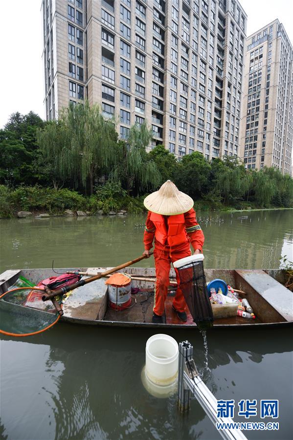 10月21日,保洁人员将河道垃圾自动清扫系统收集的垃圾集中到保洁船上运走。 从2020年下半年开始,浙江省杭州市下城区城市管理局以提升民众获得感、全民共享治水成果为出发点,对辖区多条河道推广运用智能监测系统、无人驾驶船只巡检系统、河道AI监控系统、河道垃圾自动清扫系统、污水零直排综合评价系统、百姓服务港等软硬件设施,用高科技手段实施“智慧治水”,完善云上城管平台,打造 “景观带、生活带、智慧带”为一体的美丽河道,实现城区河道“社会共治、全民共享、智慧监管、精准治理”的目标。 新华社记者 徐昱 摄