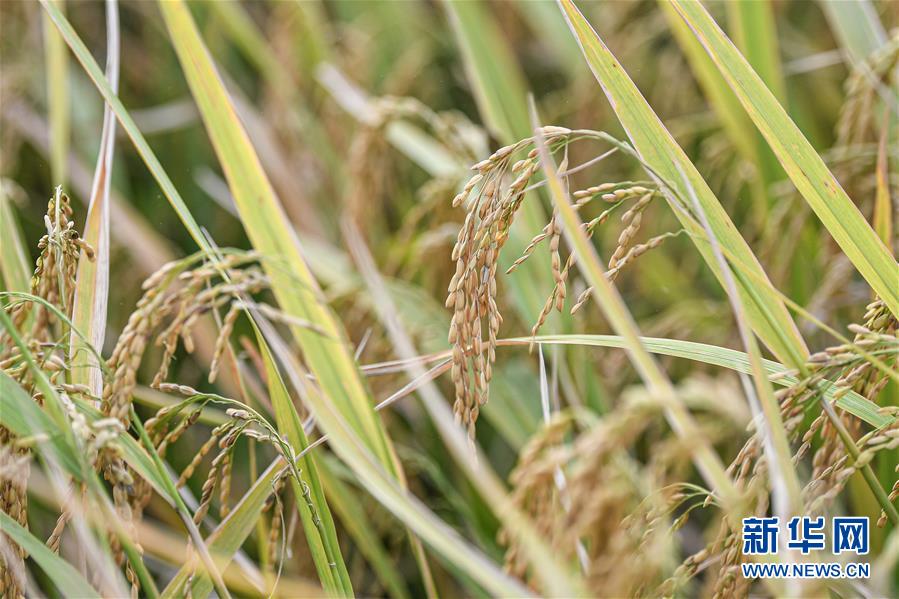 这是10月22日在海口龙华区龙泉镇新江村拍摄的晚稻。 近日,海口地区的晚稻陆续成熟。在海口龙华区龙泉镇新江村,当地村民抢抓农时,趁晴朗天气抓紧收割晚稻。 新华社记者 蒲晓旭 摄