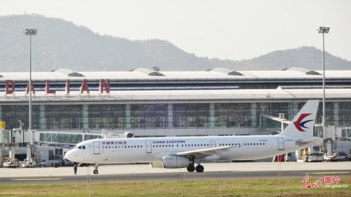 自2020年10月25日至2021年3月27日,中国民航将执行2020/21年冬春航季航班计划。根据计划,在国内航线航班(不含港澳台地区)方面,各航空公司每周共安排国内航班86735班,同比2019/20年冬春航季增长20.2%。图为10月24日,大连机场起降的航班。(刘德斌摄/光明图片)
