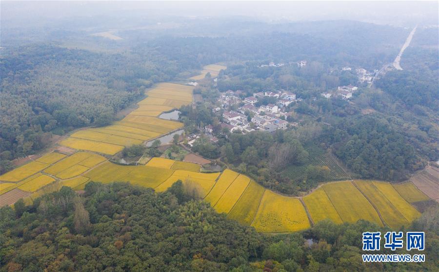 10月27日拍摄的江苏省句容市下蜀镇空青村梁庄自然村景色(无人机照片)。新华社记者 季春鹏 摄