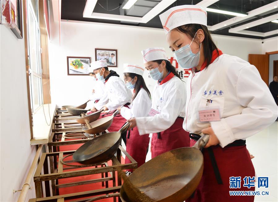 10月27日,在东乡县职业技术学校,学员练习烹饪技能。 甘肃省临夏回族自治州东乡族自治县属于“三区三州”深度贫困地区。近年来,该县因地制宜、精准施策,采取免费“订单培训”等模式,开设中式烹饪、美容美发、拉面技术等课程,引导贫困群众发展劳务产业,助力脱贫攻坚。目前,当地特色劳务技艺培训已经走上了品牌化、专业化道路。 新华社发(史有东 摄)