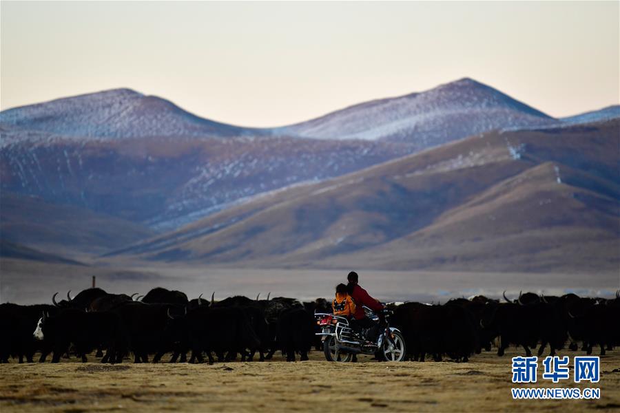 10月28日,青海省玉树藏族自治州称多县珍秦镇二村牧民骑着摩托车放牧。 日前,位于青海省玉树藏族自治州称多县的嘉塘草原生机勃勃。嘉塘草原地处三江源生态保护区的核心区,畜牧业是当地赖以生存和发展的支柱产业。近年来,当地政府通过调整产业结构,构建划区轮牧、科学养畜、草畜平衡、协调发展为主的生态畜牧业,形成生态保护和畜牧业生产的良性循环。 新华社记者 张龙 摄