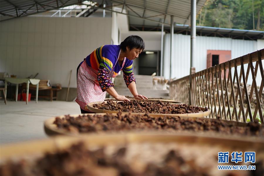 在靖安县宝峰镇,村民在晾晒黄精(10月28日摄)。 江西省靖安县宝峰镇是一个山区镇,为了在保护生态的同时促进百姓增收,当地从2014年起推广林下种植中草药黄精。相比平地种植,山区种植黄精提高了土地利用率,也有助于防止水土流失。目前宝峰镇的黄精种植面积已达2000亩,推出了黄精茶、黄精米粉等产品,帮助周边群众增收。 新华社记者 周密 摄