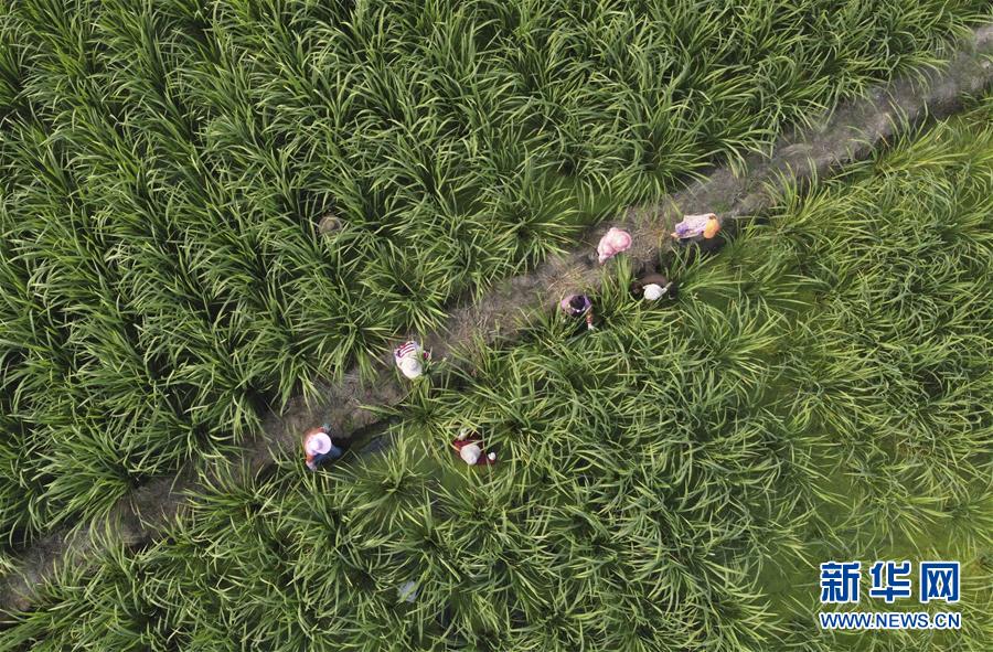 10月29日,毛桥村村民在收割茭白(无人机照片)。新华社记者 张端 摄