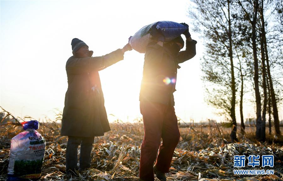 10月29日,在长春市农安县开安镇孙家屯村,农民搬运收获的玉米。 日前,吉林省秋收工作进入最后阶段。据吉林省农业农村厅10月26日农情调度,全省秋粮已收96.3%。 新华社发(颜麟蕴 摄)