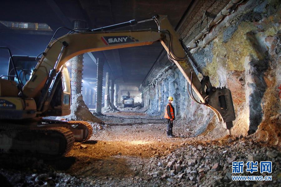 10月31日,中铁一局建设者在花溪公园站内施工。 当日,由中铁一局承建的贵阳市轨道交通3号线花溪公园站主体土石方开挖完成。花溪公园站总长305米,宽38.9米,建筑面积3万余平方米,为地下两层岛式车站。贵阳市轨道交通3号线是贵州省实施基础设施建设“六网会战”中“路网建设”的重点项目。 新华社记者 刘续 摄