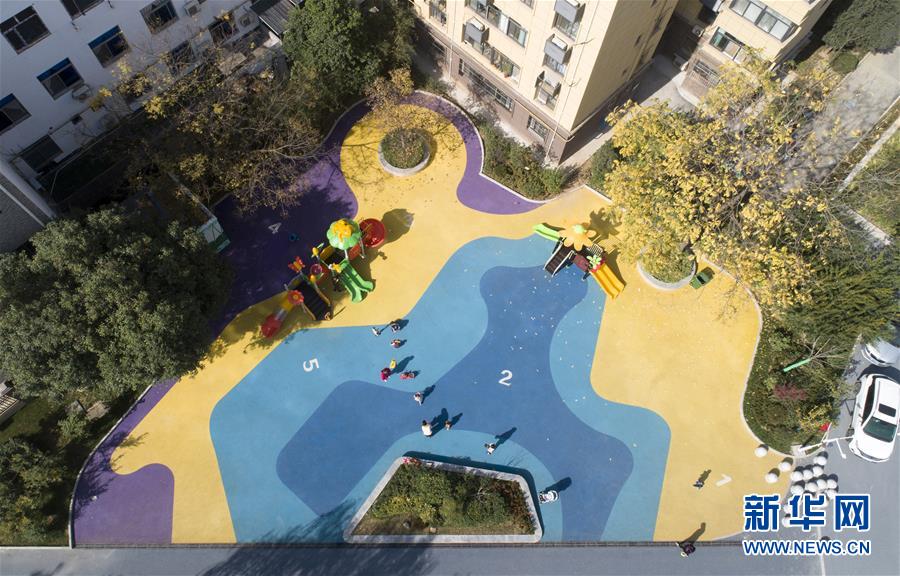 改造后的明德门北区社区儿童广场(11月2日摄,无人机照片)。 经过不到一年的紧张施工,西安市雁塔区明德门北区老旧小区改造项目近日正式完工,小区内的基础设施、居住环境、房屋功能得到明显提升,使当地社区居民拥有了更好的居住条件。 新华社记者 邵瑞 摄