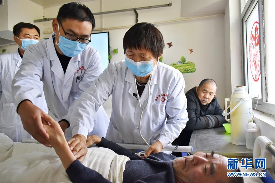 11月3日,王竹梅(右二)在滑县康太福利医院为老人诊治。