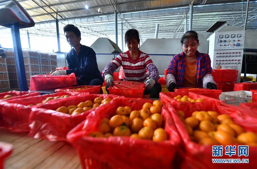 11月5日,在广西柳州市鹿寨县平山镇大阳村,村民在打包蜜桔,准备发货。 新华社记者 黄孝邦 摄
