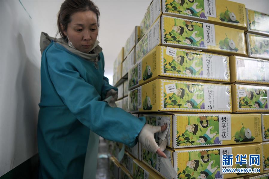11月5日,在石家庄晋州市一家果品进出口企业的出口装运区,工人在贴出厂日期标签。 河北省石家庄晋州市梨果栽培历史悠久,现有梨树种植面积17万亩、鲜梨国际标准化出口示范基地11个。当地大力推广梨果无公害标准化生产,并发展梨果产业化经营,形成了规模化种植、标准化生产、商品化处理、品牌化销售格局。梨果产业成为当地农民致富增收的重要支柱产业。 新华社发(蒲东峰 摄)