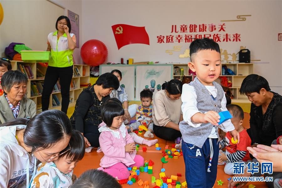 小朋友和家长在黄龙村幼教活动室玩耍(11月4日摄)。黄龙村设立免费幼教班,解决儿童入园前阶段教育培养问题。 黄龙村曾是广东佛山顺德区20个“经济发展较慢村”之一,集体经济收入、农村人均收入、股份分红远低于全区平均水平。2012年12月以来,黄龙村以党建引领基层治理和乡村振兴,推动各项事业实现高质量发展,2019年黄龙村农村居民人均纯收入达2.8万元。 新华社记者 刘大伟 摄