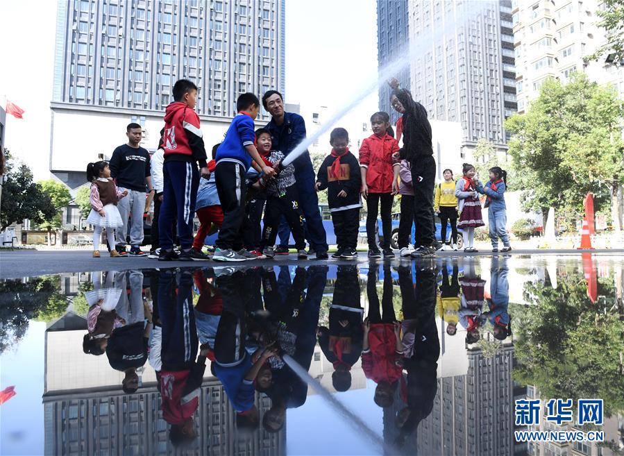 当日,安徽省合肥市常青街道油坊岗社区组织辖区儿童来到包河区消防救援大队,近距离接触消防救援装备,学习消防安全知识,迎接“全国消防日”的到来。 新华社记者刘军喜摄