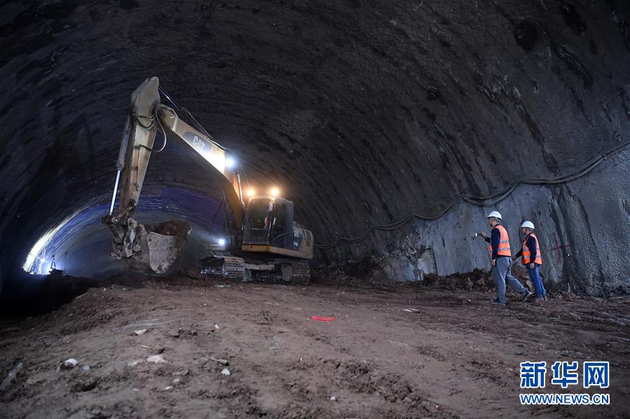 11月7日,工作人员在重庆首座下穿机场铁路隧道贯通面进行施工作业。 11月7日,由中铁二院勘察设计、中铁二十四局承建的重庆铁路枢纽东环线机场支线江北机场隧道顺利贯通。该隧道为单洞双线隧道,全长4490米,是重庆市首座下穿机场铁路隧道。 新华社记者 唐奕 摄