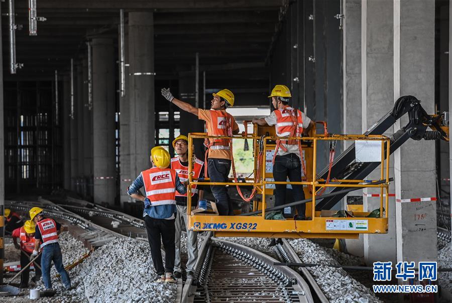 11月9日,施工人员在广州市地铁18号线陇枕停车场架设梁下管道。 日前,由中铁十一局承建的广州市地铁18号线陇枕停车场封顶在即。该停车场占地约21万平方米,形似一把巨型吉他,主要承担地铁车辆的停放、日常保养、列检及周月检任务。地铁18号连接广州市中心城区与南沙自贸区,设计最高时速160公里。 新华社记者 刘大伟 摄