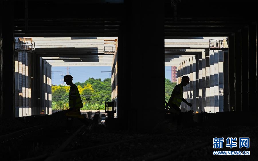 11月9日,施工人员在广州市地铁18号线陇枕停车场忙碌。 日前,由中铁十一局承建的广州市地铁18号线陇枕停车场封顶在即。该停车场占地约21万平方米,形似一把巨型吉他,主要承担地铁车辆的停放、日常保养、列检及周月检任务。地铁18号连接广州市中心城区与南沙自贸区,设计最高时速160公里。 新华社记者 刘大伟 摄