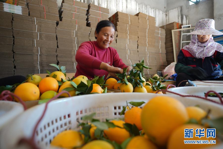 近日,江西省赣州市的脐橙进入采摘期,果园一派繁忙景象。据介绍,今年赣州市种植脐橙近170万亩,预计年产量超100万吨。