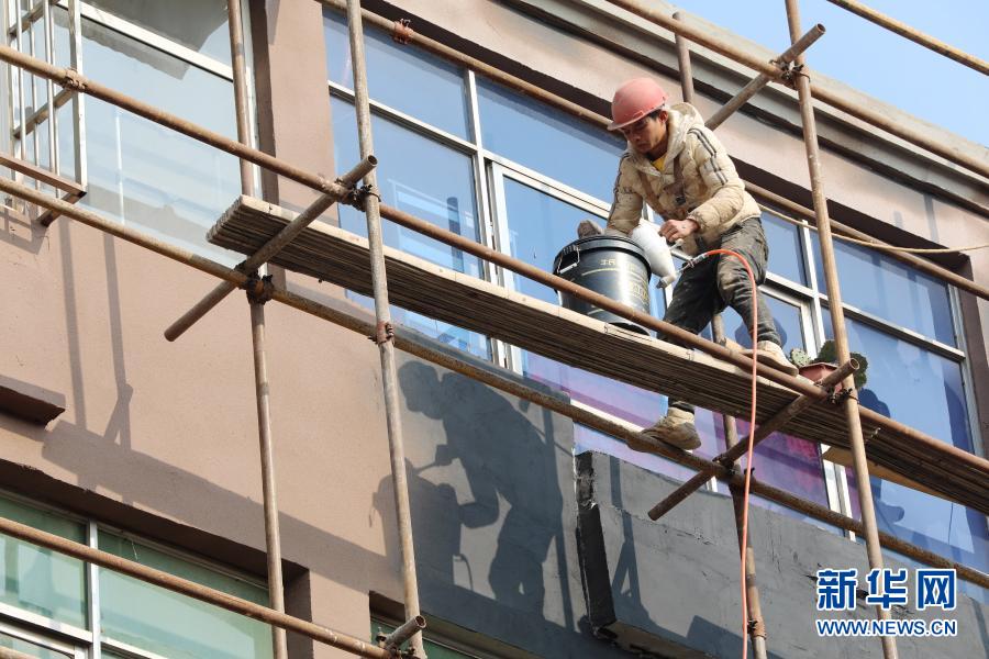11月15日,工人在河南省焦作市温县一处老旧小区改造项目中施工。河南省焦作市温县为了改善老旧小区内的居民生活环境、提升居住品质,启动老旧小区改造工程,为老旧居民楼更换水电管网,墙体加装保温层,完善小区配套基础设施,优化美化环境,让老旧小区“旧貌换新颜”。新华社发(徐宏星 摄)