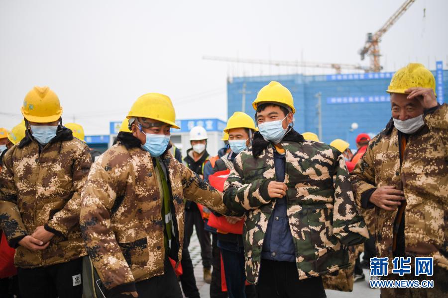 11月16日,在中建三局二公司北京公司怀柔中科院项目部,工友们试穿新棉服。