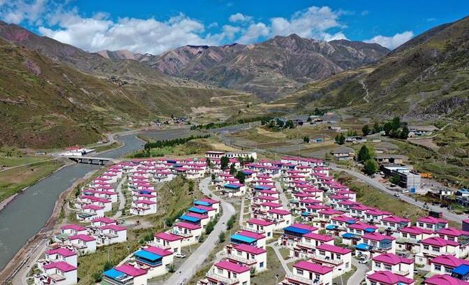 西藏昌都市丁青县尺牍镇易地扶贫搬迁安置点一角(9月18日摄,无人机照片)。
