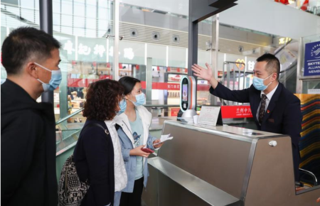 国庆中秋假期前夕,兰州中川国际机场针对疫情防控常态化要求,提升服务标准,为旅客提供包括如何申请健康码、机场和机上注意事项、紧急情况处置办法等内容的咨询服务,助旅客安全出行。