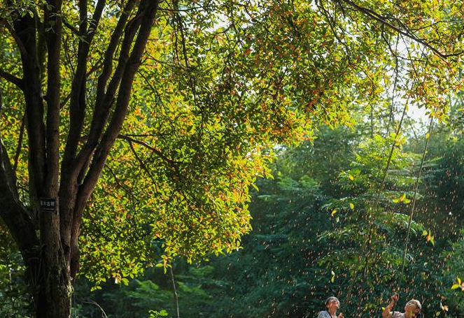 9月24日,四川省泸州市江阳区邻玉街道天堂村的村民在打收桂花。 金秋时节,四川省泸州市江阳区邻玉街道天堂村的村民们忙着打收桂花,制作桂花糕等美食,迎接中秋佳节的到来。