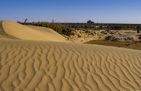 近日,新疆和田至若羌铁路施工现场一片繁忙,铺轨、路基护坡、架梁等各项建设稳步推进。