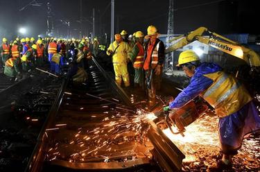 9月23日凌晨,由中铁二十四局负责施工的安徽合肥涡阳路下穿淮南、合武绕行线立交工程涉铁项目顺利完成既有道岔拆除、新道岔铺设及线路拨接等工序。600余名施工人员深夜冒雨施工,确保重点工程建设进度。