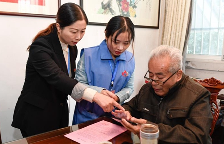 11月13日,吴兴区飞英街道米行街社区普查人员指导一名孤寡老人在家中使用电子采集设备完成签名。 [详细]
