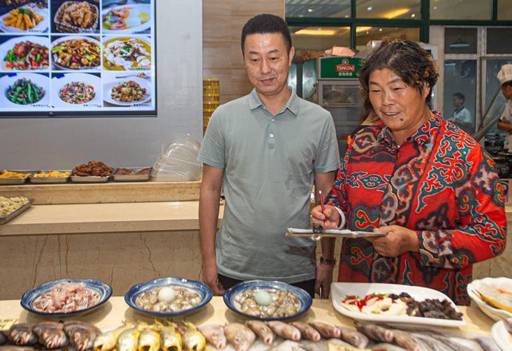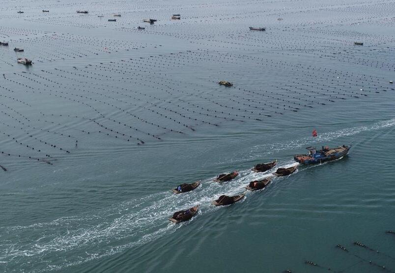 江蓠又称龙须菜,当地渔民利用海上作物生长规律巧打"时间差”,在海带收割的间歇期,在收获完的海带养殖架上养殖江蓠,提高海上养殖的产出效益,增加收入。