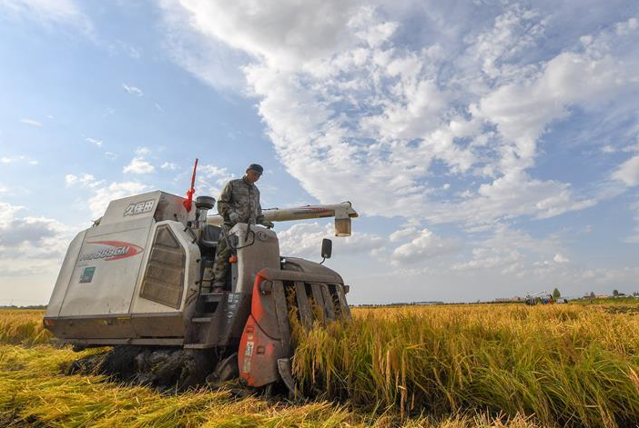 金秋九月,吉林省各水稻主产区陆续进入收获季,农民抓紧收割水稻,田间呈现喜人的秋收图景。
