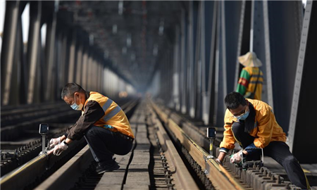 随着气温下降,中国铁路武汉局集团有限公司武汉桥工段加大对管内钢轨探伤的检查力度,确保运输安全。
