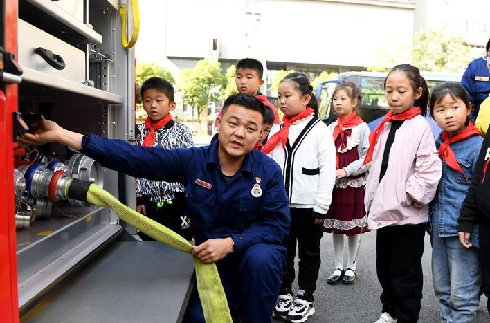 安徽省合肥市常青街道油坊岗社区组织辖区儿童来到包河区消防救援大队,近距离接触消防救援装备,学习消防安全知识,迎接“全国消防日”的到来。
