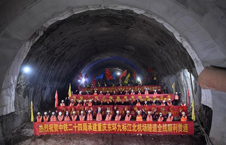 11月7日,由中铁二院勘察设计、中铁二十四局承建的重庆铁路枢纽东环线机场支线江北机场隧道顺利贯通。该隧道为单洞双线隧道。