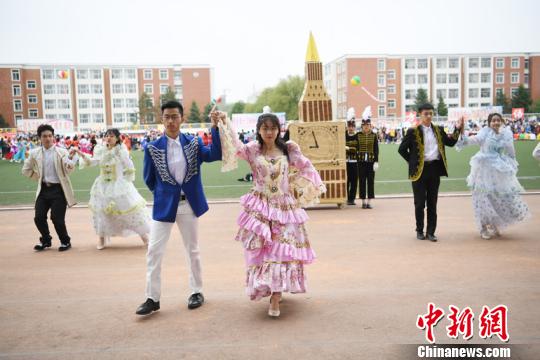 学生们随着音乐跳起了华尔兹 张瑶 摄