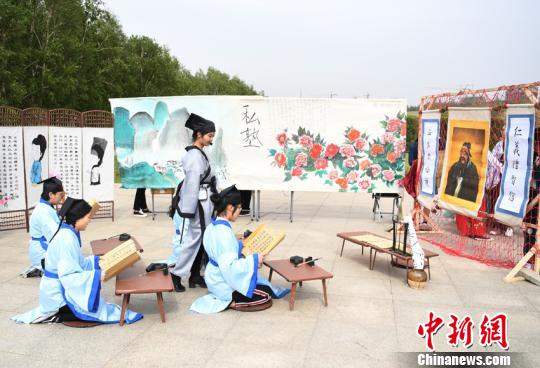 学生们通过情景剧的形式,展现中国私塾。 张瑶 摄