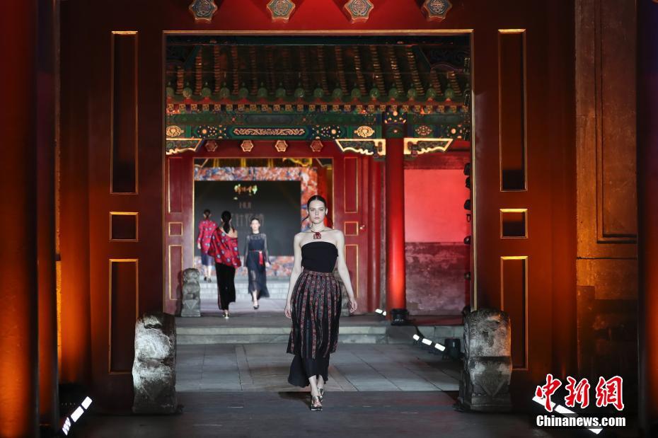 6月4日晚,“艺针忆绣——非遗服饰秀”的模特身着华服登场。当日,2018“锦绣中华——中国非物质文化遗产服饰秀”系列活动在恭王府博物馆开幕。6月4日至9日,6晚11场以中国非物质文化遗产为主题的服饰秀展演,选取非物质文化遗产在现代服饰中的应用实例,展现振兴中国传统工艺、非遗走进美好生活的盛况。中新社记者 盛佳鹏 摄